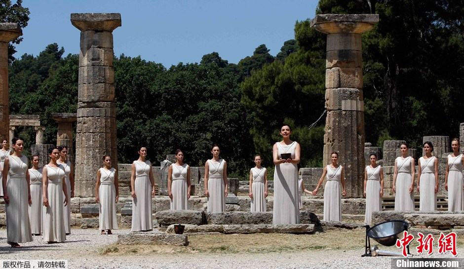 5月10日,2012年倫敦奧運會圣火采集儀式在希臘奧林匹亞的赫拉神廟舉行。