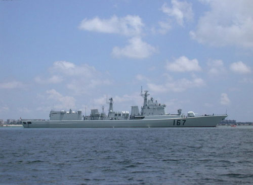 ![]() 湛江港內(nèi)的“深圳”號(hào)驅(qū)逐艦(資料圖)