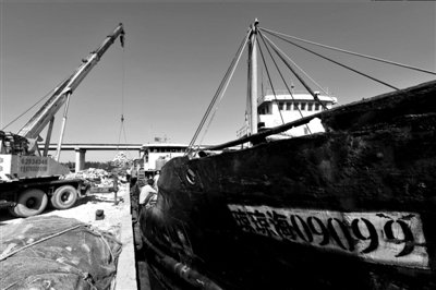 昨天,“瓊瓊海09099”船卸下捕撈品。當(dāng)天,該船從黃巖島海域捕魚歸來,駛進瓊海市潭門中心碼頭(中新社供圖)