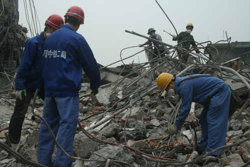 青島新聞網(wǎng)5月12日 在市北區(qū)普集路的一處工地上,有一位“不同尋?!钡霓r(nóng)民工。他來自四川鄉(xiāng)下,他的事跡卻感動了全中國。5.12大地震時,他臨危受命,組織搶險救災(zāi)隊,用自己的雙手從廢墟里搶救出許多鮮活的生命。在日常工作中,他一絲不茍、克己愛人。在美麗的濱海城市青島,一棟以他的名字命名大樓拔地而起。他先后獲得“抗震救災(zāi)英雄”稱號、“全國五一勞動獎?wù)隆钡?,他就是今天故事的主人公——來自中鐵二局的馬樸亭,工友們送他一個響亮的名字——“馬英雄”。 臨危受命冒死救災(zāi) 在市北區(qū)普集路的工地上,提起“馬英雄”,無人不曉。見到他時,他正在工地上巡檢。中等身材,一身藍色工作服,一臉憨笑,說話鏗鏘有力。 當記者問及當年抗震救災(zāi)時,“馬英雄”眉頭緊鎖,思忖良久,才打開了話匣子:“關(guān)于大地震,我實在有太多話要說,如果有時間,我都想把這個經(jīng)歷寫一本書?!?/p> 據(jù)他講,當?shù)卣鸢l(fā)生時,他和工友們正在成都市區(qū)的一個工地上?!扒耙惶焱砩?,我剛熬了一個通宵寫材料,正準備午間休息一下,突然間地下轟鳴,人感覺像坐在篩子上被晃來晃去,我馬上意識到,地震了。”當時,工地上大約有五六百人,都住在臨時工棚里?!按蟮刈笥一蝿?,工棚的房頂隨時有塌落的危險,必須馬上救出他們。” 在還沒接到上級命令的時候,農(nóng)民工馬樸亭毛遂自薦,當起了現(xiàn)場總指揮。他馬上點了26名熟識的老鄉(xiāng),分成5個小隊,僅用了半個小時時間,就將五六百名工友有序轉(zhuǎn)移到了安全的地方,無一人受傷。 緊接著,上級領(lǐng)導(dǎo)趕到了工地,看到馬樸亭的表現(xiàn)后,臨時指派他為搶險救援隊長,并要求他在一個小時內(nèi),組織100人的隊伍,前往都江堰搶險。 通過各種渠道,工友們了解到在都江堰,很多房子倒塌了,死了很多人,恐懼情緒迅速蔓延看來。半個小時過去了,任憑馬樸亭怎么動員,怎么哭喊,工友們無一人響應(yīng)。就在這時,這時,令馬樸亭終身難忘的事情發(fā)生了。項目經(jīng)理張華在人群中大聲地說:“我是共產(chǎn)黨員,我第一個報名?!苯又统鲎约旱纳矸葑C:這是我身份證,你登記一下號碼!很快,泥工班長張清擠了上來:我也是黨員,給我也報上。緊接著,機修周德全也擠了上來……在他們的帶動下,百人搶險隊迅速成立。 老馬說:“關(guān)鍵的時候,是黨員的表率作用把大家緊緊凝聚到了一起。他們才是真正的英雄,是我們學(xué)習(xí)的榜樣。我打心眼里敬佩他們?!?/p> 隨后,隊伍連夜開往都江堰,參與到了那場感動世界的抗震救災(zāi)中。在沒水、沒飯、沒工具的情況下,馬樸亭帶領(lǐng)隊伍,搶救出70多名被埋人員,其中12名幸存者。 |