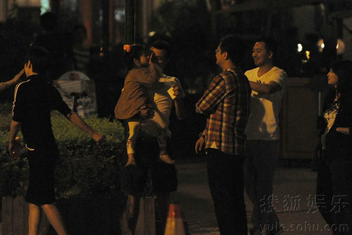 這對“姐弟戀”,從相識到結(jié)婚生子,一直處在人們的懷疑聲中。不過兩人的感情卻有越挫越勇的架勢,只要是兩人同時出席的場合,總能給人帶來甜蜜溫馨的感覺。其中,天真頑皮的小愛馬絕對功不可沒。日前某天晚上十點半左右,我們在麗都附近一家酒吧露天座發(fā)現(xiàn)文章馬伊琍夫婦。當時文章夫婦正與幾位友人在此喝酒聊天,馬伊琍則拿出手機,面帶喜色的與對方煲電話粥。席間眾人有說有笑,氣氛相當融洽。此時我們發(fā)現(xiàn),小愛馬也在其中,她手舞足蹈,向在座友人展現(xiàn)“高超”舞技,很有舞蹈天賦。不多時,文章馬伊琍一行人走出酒吧。文章一身休閑裝扮與一男一女走在前面,搭著兩位友人的肩膀,醉眼惺忪,顯然有些喝高了。馬伊琍牽著小愛馬跟在后面。小愛馬蹦蹦跳跳的走在媽媽身邊,看上去十分開心,離別時與同行叔叔打鬧,甚是調(diào)皮。文章一把將女兒抱入懷中,而小愛馬似乎還沒玩盡興,仍伸手與叔叔打鬧,無奈文章只得抱著女兒與友人道別離開。