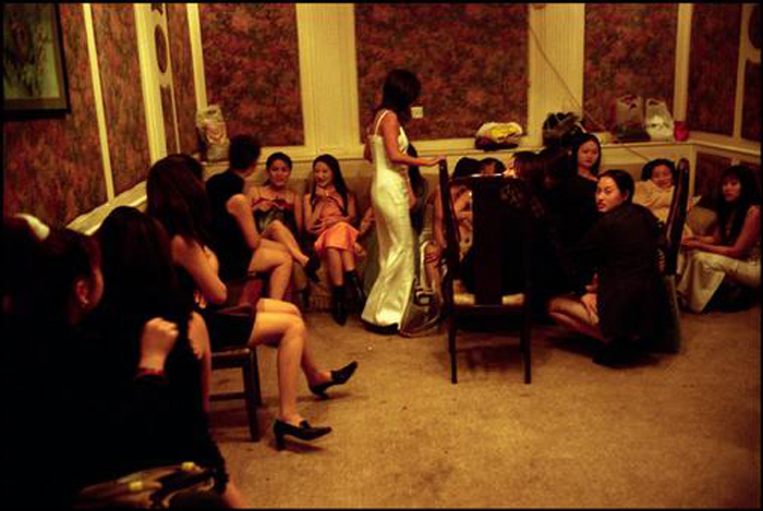 北京,女孩們?cè)凇昂笈_(tái)”等待客人挑選。