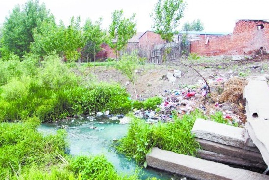 ![]() 藍(lán)色頂棚的豆芽廠就在污水河旁。
