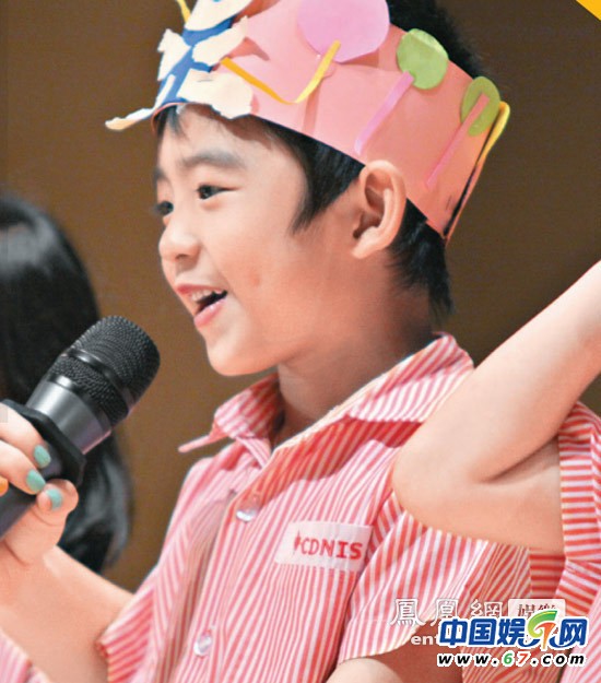 曝Lucas學校賣萌唱歌照 頭戴小皇冠露酒窩(組圖)