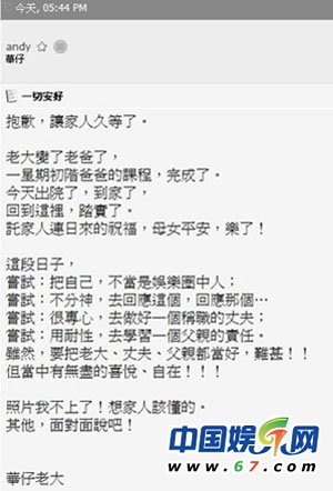 官網(wǎng)報喜 華仔嘗試做一個平凡的父親