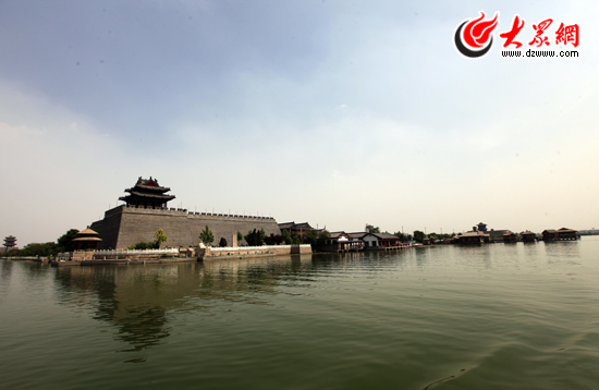 在東昌湖中央賞聊城古城的角樓。(盛堃 攝影)