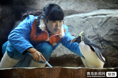 ????青島新聞網(wǎng)5月15日訊 “每次我一進企鵝的飼養(yǎng)區(qū)內(nèi),“蛋蛋”就一直啄我的衣服,扇著翅膀往我身上蹭,讓我抱著它,只要一抱著它,蛋蛋就不讓別的小企鵝靠近了……”最近。青島海昌極地海洋世界企鵝展館里發(fā)生了一件新鮮事,一直叫蛋蛋的雄性企鵝愛上了飼養(yǎng)企鵝的美女工作人員,每天只要美女飼養(yǎng)員進入到企鵝籠舍,“蛋蛋”就會黏上去,如果有其他企鵝想靠近飼養(yǎng)員,它就會醋意大發(fā),用翅膀拍打、驅(qū)趕其他企