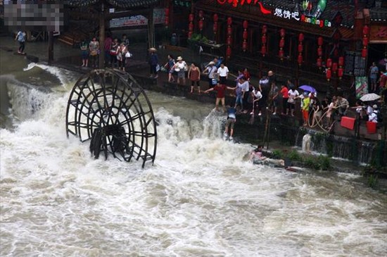湖南湘西遭遇強(qiáng)降雨 鳳凰古城部分街道被淹