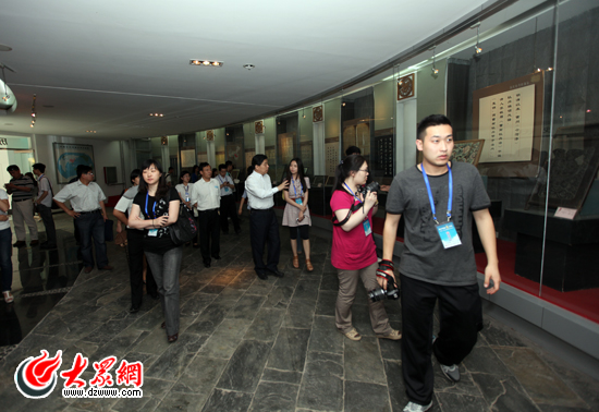 采訪團記者在中國牡丹博物館內(nèi)參觀采訪。(盛堃 攝像)