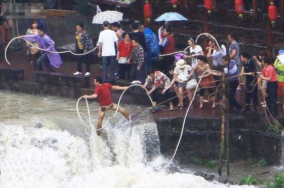 鳳凰古城游客落入洪水 群眾急流中舍身營救(組圖)