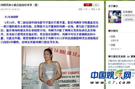 5月16日19點(diǎn)38分,知名博主長春國貿(mào)在微博中發(fā)了兩張鞏俐的照片,一張為身穿貼身高貴銀色晚裝,另一張有網(wǎng)友提供的疑似鞏俐到巴黎某商場購物時(shí)的照片,鞏俐穿白色緊身裙,照片上鞏俐身材略顯豐腴,小腹微微隆起。對此,長春國貿(mào)稱“14日鞏俐亮相法國中國電影節(jié)開幕式,其身材明顯發(fā)福走樣,并在拍照時(shí)手遮微隆小腹。巧的是幾天前鞏俐到巴黎某商場購物時(shí)也曾被拍到小腹明顯隆起的照片。因此有網(wǎng)友懷疑鞏俐為了深愛的小男友已冒險(xiǎn)高齡懷孕,準(zhǔn)備為其生子?!?/p>