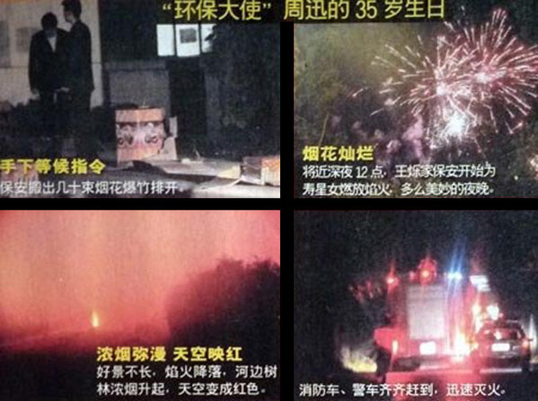 周迅的生日則是令人啼笑皆非,“環(huán)保大使”慶生大放煙花,遂即引發(fā)火災(zāi),按照北京消防管理?xiàng)l例規(guī)定,受處罰肯定是免不了。周迅近年來(lái)一直提倡環(huán)保,積極參加公益事業(yè),按理說(shuō)環(huán)保意識(shí)應(yīng)該夠強(qiáng)了。18日當(dāng)天的天氣,她本應(yīng)出面制止燃放煙火,因?yàn)榧炔画h(huán)保,也容易造成火災(zāi)。