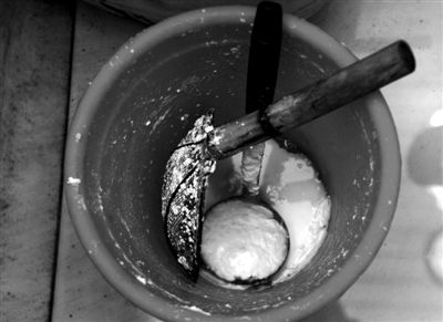 車間里的水桶,制作冰棍所需的配料在這個桶里攪拌(尹亞飛 攝)