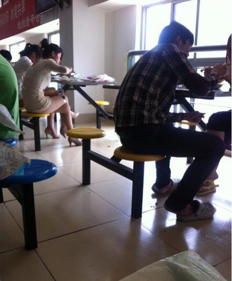 大學(xué)食堂里的彪悍姐!你要不要這么霸氣外露啊,裙子如此地短,還翹著二郎腿,太夸張了。美眉公共場(chǎng)合就不能注意點(diǎn)形象么,令人汗顏啊!