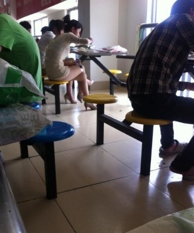 大學食堂里的彪悍姐!你要不要這么霸氣外露啊,裙子如此地短,還翹著二郎腿,太夸張了。美眉公共場合就不能注意點形象么,令人汗顏啊!