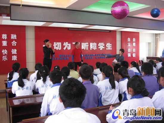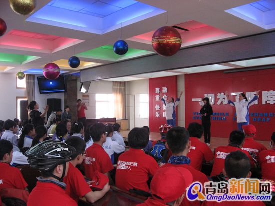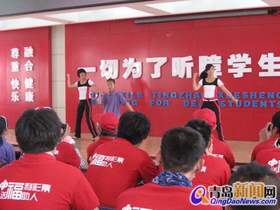 隨后,在手語老師的指導(dǎo)下,青島市中心聾校的孩子們也送上了排練已久的精彩節(jié)目,即手語朗誦及極富韻律感的舞蹈表演,演出博得在場各位的熱烈掌聲。最后,參與網(wǎng)友及隨行人員還集體觀看了青島市中心聾校的宣傳片,參觀了校內(nèi)隨時可供學(xué)生閱讀的“快樂書吧”及現(xiàn)代化教學(xué)器材交互式電子白板等硬件設(shè)施,全隊(duì)對良好的校園環(huán)境感觸頗深。