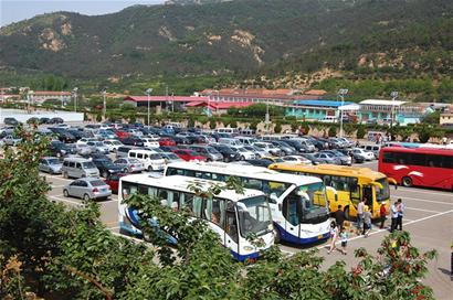 ????記者沿山路而上,一路上還算順暢,只是到了拐彎的地方,由于車(chē)輛紛紛減速,出現(xiàn)小范圍的塞車(chē)。一直臨近山色峪主會(huì)場(chǎng)停車(chē)場(chǎng),交通開(kāi)始變得擁堵起來(lái),出現(xiàn)排隊(duì)等候的場(chǎng)景。在主會(huì)場(chǎng)停車(chē)場(chǎng),記者看到,這里設(shè)置了大量交通指示牌,進(jìn)山車(chē)輛都能根據(jù)指示牌提示有秩序停車(chē)?!皬耐甑慕?jīng)驗(yàn)看,出現(xiàn)擁堵的主要原因是隨意停車(chē),今年,我們實(shí)行進(jìn)山路全路段禁停措施,雖然車(chē)輛還是一如既往的多,但沒(méi)有出現(xiàn)大范圍的擁堵。加上游客自覺(jué)性高了,交通一天都相對(duì)較順暢。”現(xiàn)場(chǎng)執(zhí)勤交警說(shuō)。