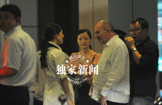 章子怡潮裝深夜會友 與老外親熱寒暄顯國際范(組圖)