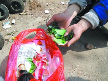 ????碎玻璃、蟹子殼和釘子等銳物大多集中在小區(qū)和飯店集中的道路,因為大多數市民在傾倒垃圾時都不會進行垃圾分類,所有垃圾裝到一個塑料袋內就扔了,這就給環(huán)衛(wèi)工被割傷埋下了隱患。負責閩江路清潔的環(huán)衛(wèi)工張師傅告訴記者,“不少市民都把垃圾往垃圾桶旁邊隨手一扔,并不扔進桶里。我們需要用手捧起來再裝到桶里,很多時候都在晚上清理垃圾,垃圾堆里的碎玻璃啥的根本就看不到,很容易被割傷。 ”