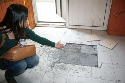 ????昨天下午,記者來到龍華路3號,楊女士的這套房子屬于沿街老房,只有30多平方米?!胺孔幼铋_始可能是個車庫,后來變成了私人房產,我從前房主手中購買時,手續(xù)、證件很齊全?!睏钆空f。記者看到,客廳中間有4塊地板磚被挪開,楊女士說地板磚被挪開的地方下面就是古力井,上次管道疏通工人來疏通古力井后,又用水泥將蓋封上了。