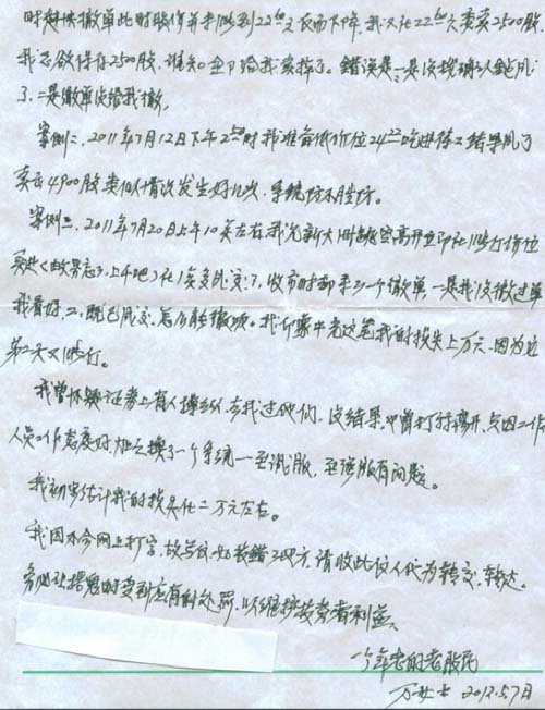 ????我是2010年2月來(lái)到廣東佛山市,在廣發(fā)證券開(kāi)了戶頭,幾個(gè)月后我就發(fā)現(xiàn)出了錯(cuò)誤。開(kāi)始以為是自己老糊涂了,可又覺(jué)得自己腦子清楚得很不可能將低價(jià)位買進(jìn)變成地價(jià)為賣出,也不可能將高價(jià)位賣出變成高價(jià)位買進(jìn)。我是95年4月開(kāi)始炒股,16年股齡這樣的錯(cuò)誤以前從未出現(xiàn)過(guò),就是出現(xiàn)也不會(huì)一、二、三、四的出現(xiàn)。于是我開(kāi)始注意自己的操作。