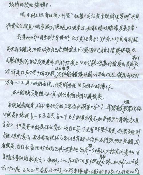 ????我曾懷疑證券上有人操縱,去找過(guò)他們,沒(méi)結(jié)果。也曾打算離開(kāi),又因?yàn)楣ぷ魅藛T工作態(tài)度好,加之換了個(gè)系統(tǒng)——致誠(chéng)版、至強(qiáng)版有問(wèn)題