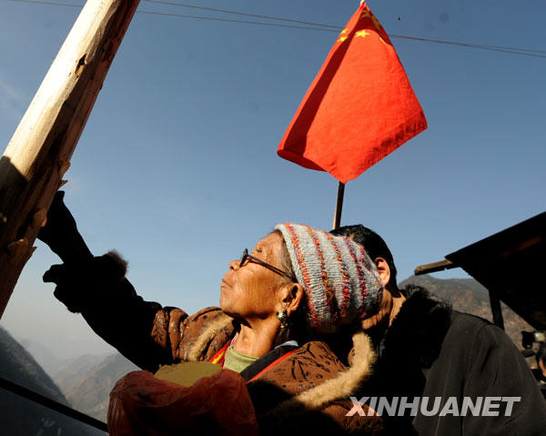 資料圖片:2009年4月5日,老阿媽次仁曲珍為新立的旗桿獻上酥油,表示吉祥如意。
