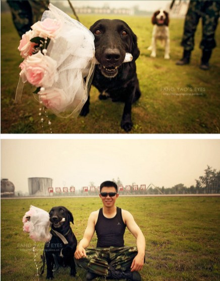 消防員當(dāng)背景搜救犬湊熱鬧 滅火的新郎“火”了