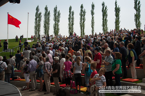 在莊嚴(yán)的中華人民共和國國歌聲中,伴隨著五星紅旗升起,中國館日活動開始。荷蘭霍斯特市市長范?諾耶首先致歡迎辭,2012荷蘭世園會組委會主席嘉伯、中國駐荷蘭大使張軍分別致辭。中國花卉協(xié)會會長江澤慧發(fā)表了熱情洋溢的講