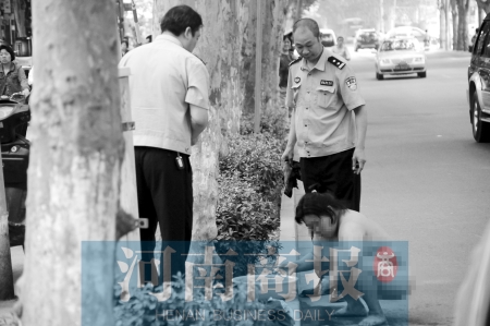 ????昨日上午9時45分許,鄭州市伏牛路與汝河路交叉口北200米路西,一名三四十歲的中年女子全身赤裸,站在伏牛路的快車道上不停地罵著。在她的北邊,停著一輛公交車,司機(jī)和乘客無奈地坐在車?yán)铩<s10分鐘