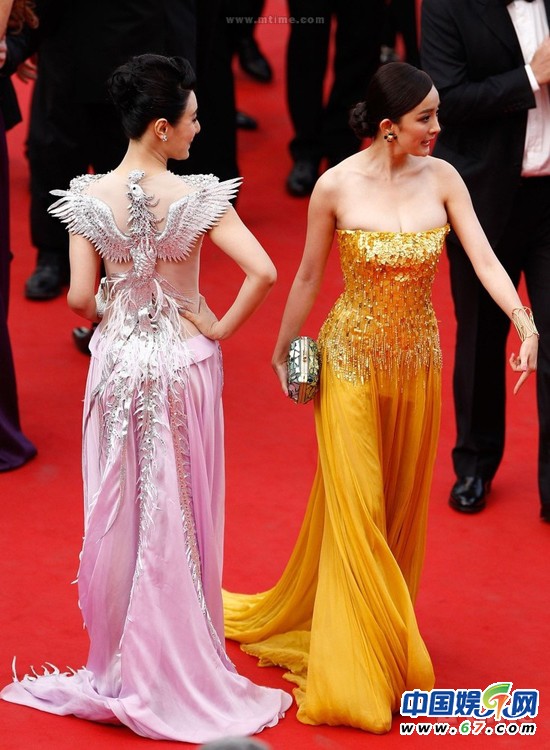 戛納影展第二日,楊冪和陳廷嘉盛裝隨《畫皮2》劇組踏上紅地毯,但現(xiàn)場記者貌似都不認識二人,長槍短炮都瞄準(zhǔn)其他嘉賓。沒人理會的她們誓不罷休,到處狂擺pose不肯走,因滯留太久遭當(dāng)?shù)乇0捕啻悟?qū)趕,惱羞成怒的楊冪氣得對保安豎起中指發(fā)泄。另外,楊冪這次走紅毯的金色長裙也劣評如潮,顯得相當(dāng)俗套。