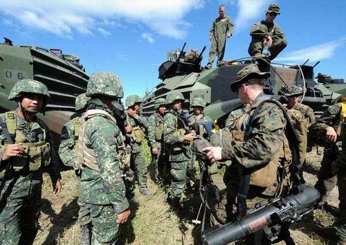 資料圖:美國菲律賓在南海附近舉行聯(lián)合軍演。