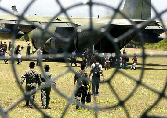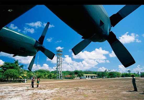 資料圖:中業(yè)島上的菲律賓軍與C-130運(yùn)輸機(jī)。