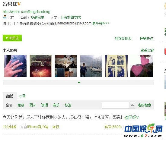 近日有網(wǎng)友爆料,指馮紹峰與“謀女郎”倪妮正在熱戀中,并且已交往了一個月左右。還有網(wǎng)友拍到了疑似二人一起逛街的照片。對此,今日馮紹峰在微博上發(fā)表了愛的宣言:“老天讓你等,是為讓你遇到對的人,現(xiàn)在很幸福,上蒼眷顧,感恩?!辈了倪妮,大方公開了這段戀情。