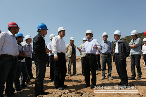 昨日上午,副市長、2014青島世園會執(zhí)委會執(zhí)行主任王建祥到世園會施工現(xiàn)場調(diào)研工程建設(shè)情況,詳細了解了主題館、植物館、科技館、天水地池景觀等工程的具體進度。