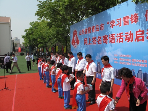 ??? 青島新聞網(wǎng)5月25日訊?今日,“學(xué)習(xí)雷鋒,做美德少年”網(wǎng)上簽名寄語活動(dòng)啟動(dòng)儀式在青島市市北區(qū)福州路小學(xué)舉行。中央文明辦吳向東副局長、省文明辦王紅勇副主任、市人大副主任鄒川寧、青島市委宣傳部副部長、市文明辦主任王溱同志參加了此次啟動(dòng)儀式。