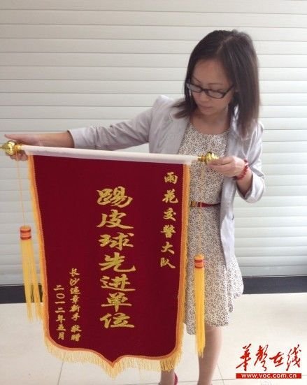 女子贈(zèng)長沙雨花交警大隊(duì)“踢皮球先進(jìn)單位”錦旗
