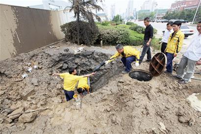 隨后,開(kāi)發(fā)區(qū)新奧燃?xì)夤镜墓ぷ魅藛T趕到現(xiàn)場(chǎng),搶修人員迅速將燃?xì)夤艿赖纳舷掠伍y門(mén)關(guān)閉,將險(xiǎn)情控制住。記者在現(xiàn)場(chǎng)看到,搶修人員將被挖斷的燃?xì)夤艿廊〕?,管道裂開(kāi)的口子約有15厘米?!肮さ氐耐诰驒C(jī)將埋在地下直徑90毫米的PE管線(xiàn)挖斷,造成大量燃?xì)庑孤?,管道壓力?公斤的,應(yīng)該有1000多立方米?!遍_(kāi)發(fā)區(qū)新奧燃?xì)夤景脖2控?fù)責(zé)人張守東告訴記者,具體損失還要再進(jìn)一步落實(shí)。
