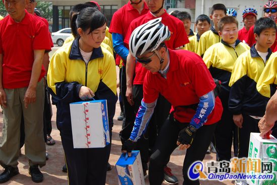在交流時,包括這位小姑娘在內(nèi)的同學們熱情開朗,對單車與其他新鮮事物充滿了好奇,騎行網(wǎng)友與孩子們對這次接觸都感觸頗深。緊接著,騎行車隊代表劉隊長發(fā)言,表示了社會愛心人士對同學們的關(guān)注與敬意,同時送上了愛心企業(yè)青島光明乳業(yè)贊助的幾十箱愛心牛奶,希望這里的孩子們能夠健康快樂地長大。隨后,同學們也為來訪者獻上了兩段節(jié)目作為感謝,悅耳的口風琴啟奏及小合唱打動了在場的人們。