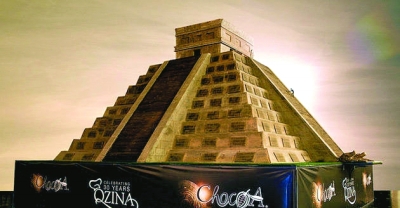 制造者打算在2012年12月21日這天“摧毀”這尊巧克力金字塔。 據(jù)外媒26日報道,日前,美國著名巧克力和糕點制造商Qzina制作了一座巧克力金字塔,刷新了世界最大巧克力雕像的吉尼斯紀(jì)錄。 今年是Qzina糕點有限公司成立30周年,為慶祝這一特殊日子,該公司制作了這座重達(dá)18239磅(約合8273千克)的巧克力金字塔,它比此前世界最大巧克力的吉尼斯紀(jì)錄保持者還重7500磅(約合3 這座巨型巧克力金字塔以一座真實的瑪雅金字塔為模型,按照1:30的比例縮小建造,塔高6英尺(約合1.8米),僅底部邊長就有10英尺(約合3.04米)。 由于巧克力金字塔無法像真的金字塔一樣長期保存,Qzina計劃在2012年12月21日,也就是瑪雅日歷中世界末日的這一天把這尊巧克力金字塔“摧毀”。 |
