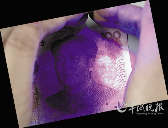 為將事情弄個水落石出,在記者的聯(lián)系下,5月24日下午,湯女士來到了人行廣州分行反假貨幣科,對鈔票進(jìn)行“終極鑒定”。經(jīng)過人行權(quán)威人士的細(xì)心鑒別,最終確定:錢是真的,那個多出來的水印是假的。這個水印是利用真鈔上本身已有的一些花紋,再用不明染料印制上去的,“就相當(dāng)于在真鈔上蓋了個章”。人行人士同時稱,真實的水印一定要逆光自然顯現(xiàn),而不是借助其他光源才能看到,像這種往真鈔上印制假水印的案例,以前也曾發(fā)生過。