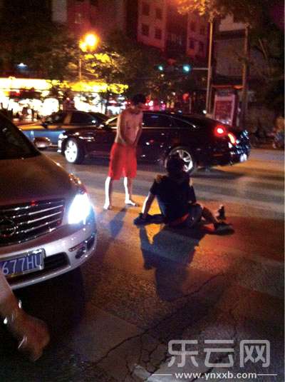 奔馳車(chē)主(短褲男)將捷豹車(chē)主打翻在地。