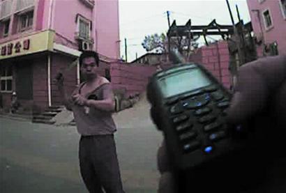 ????40多歲的男子揮動著1米多長的鐵片,沖進人群中見人就打,行人嚇得四散奔逃,一名30多歲的男青年被砸中后腦勺,鮮血頓時涌了出來。前天晚上7時10分左右,開平路派出所民警首先趕到現(xiàn)場,鹽灘派出所和水清溝派出所的民警隨后趕到支援,兩名民警“空手入白刃”搶下男子手中的鐵片,另外6名民警沖上前將其制伏。