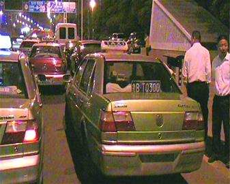 ????套用車號魯BTQ300的冒牌出租車在海爾路行駛時因故障停靠在路邊,被途經(jīng)此處的真魯BTQ300車主的朋友發(fā)現(xiàn)。車主知道后聞訊趕來,和路過此處的20多輛正規(guī)出租車把套牌出租車圍住,等待執(zhí)法人員查處。記者昨天從市交通稽查支隊獲悉,這輛套牌出租車車主面臨3萬元的重罰。