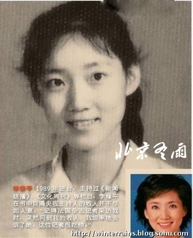 李修平,1989年進(jìn)臺(tái),主持過《新聞聯(lián)播》、《文化周刊》等欄目。