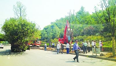 種樹工人還介紹說,他們挖走的樹是直徑13cm以下的,新栽的樹是直徑17cm的。此外,有些樹的形狀太差,要換一些形狀好看的。移走的樹有一些存放在苗圃,有一些放到其他需要的項目上去?!奥犉饋碇徊顜桌迕祝菍淠緛碚f,差別還是比較大的?!钡牵浾咴诂F(xiàn)場目測了一下,發(fā)現(xiàn)新樹和舊樹差別其實并不太大。