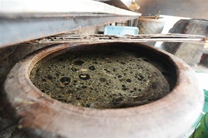 ????在現(xiàn)場記者看到多個大缸被木板封住放在角落里,執(zhí)法人員掀開后發(fā)現(xiàn)缸內(nèi)滿是已經(jīng)變得烏黑的液體,“你這缸里是什么東西?”執(zhí)法人員向老板詢問道?!澳莻€是從老家?guī)н^來的鹵水,是用來點豆腐用的?!崩习宕饛驼f。在灶臺旁記者也發(fā)現(xiàn)了這種液體,用來盛放的桶內(nèi)放著一只大勺子,“你平常是怎么加的,這些鹵水也不能隨意添加,知道嗎?”執(zhí)法人員在現(xiàn)場未發(fā)現(xiàn)精確計量工具。