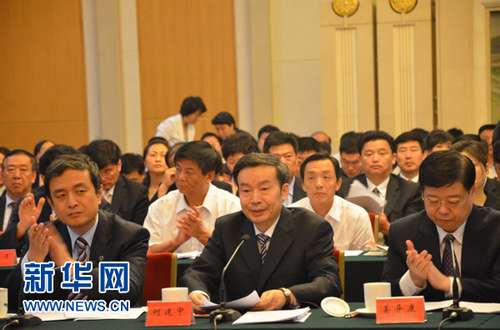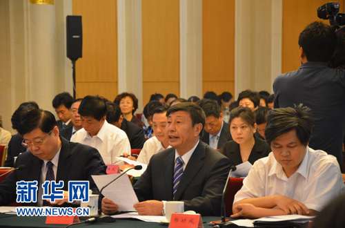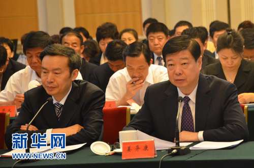 山東省委書記、省人大常委會(huì)主任姜異康(右)在會(huì)上發(fā)言。(蘇影 攝)