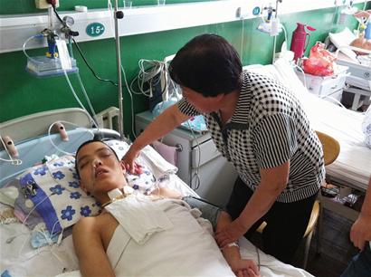 ????“都住院一個(gè)多月了,肇事司機(jī)就來(lái)看過(guò)一次!”昨日上午,在青醫(yī)附院急診神經(jīng)外科病房?jī)?nèi),躺在病床上的鄧少偉鼻子里插著氣管,下肢、雙腳等許多部位都纏著繃帶,臉色憔悴,緊閉著雙眼。4月8日,一場(chǎng)突如其來(lái)的車禍讓他昏迷至今,而讓家屬感到傷心的是肇事司機(jī)不管不問(wèn)的冷漠態(tài)度,“他給了12500塊錢后就稱沒(méi)錢不管了?!编嚿賯サ哪赣H宋女士哭著跟記者說(shuō),由于沒(méi)錢治病,最后只能是放棄治療。