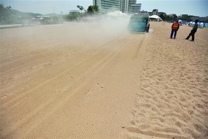 “我們的工程會(huì)趕在周四之前完工,每周前三天的客流量相對(duì)較少。 ”工作人員表示。記者注意到,還沒(méi)洗過(guò)澡的沙灘顯得較為粗糙,有一些小石子和碎屑等;而翻砂機(jī)加工過(guò)的地方沙子比較細(xì)膩,踩上去柔軟舒適。